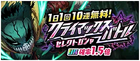 【UR確率1.5倍】『1日1回10連無料!クライマックスバトルセレクトガシャ~VS オール・フォー・ワン~』開催のお知らせ